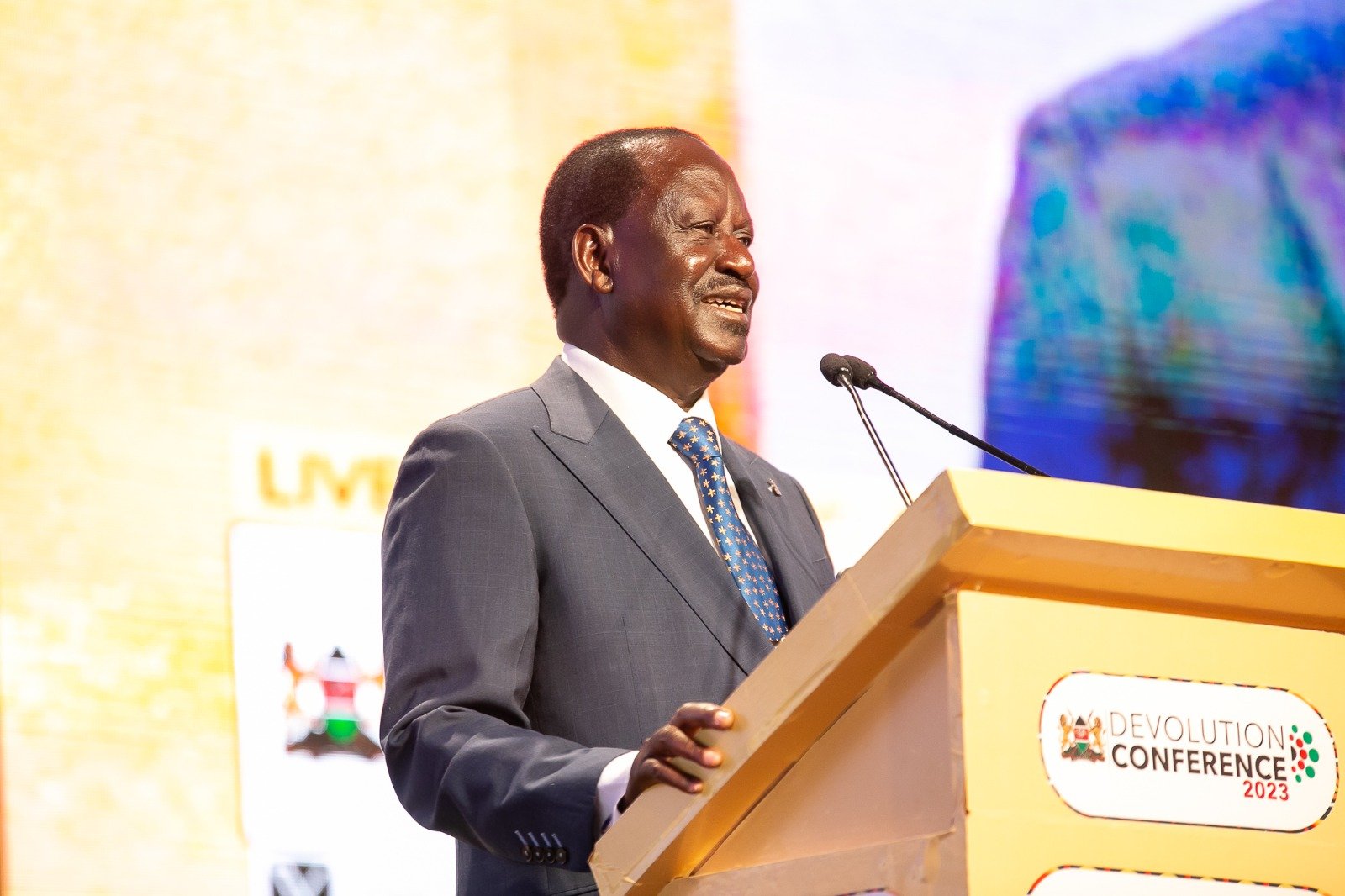Opposition leader Raila Odinga addresses the council of Governors during devolution conference which is bein held at Uasin Gishu County, Eldoret.